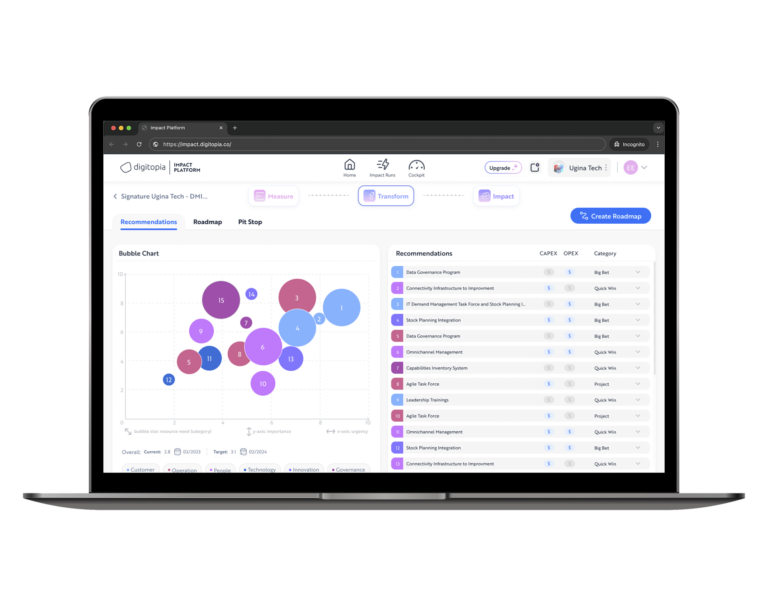 In minutes, you will see how DAIMI evaluates your readiness, capabilities, and gaps — directly inside the Impact Platform. Everything is simple, visual, and structured for fast understanding.